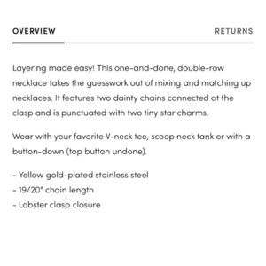 Jennifer Zeuner | Gold Tone Star Detail Double Row Necklace New With Tags NWT