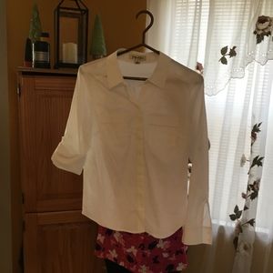 Very nice white long sleeve blouse with cuffs, you can roll sleeves up or down.