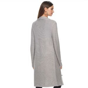 This elegant gray cardigan from Jennifer Lopez features a relaxed, open-front design and a long, flattering silhouette. Crafted from a smooth knit material, it offers a minimalist style perfect for versatile layering.