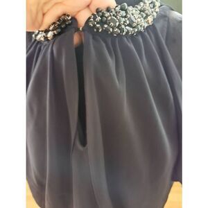 Jennifer Lopez Large Black Beaded Sleeveless Blouse Keyhole Butterfly Overlay