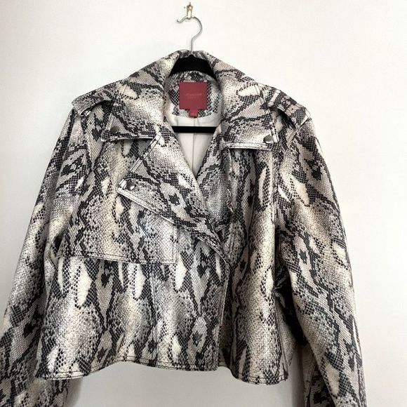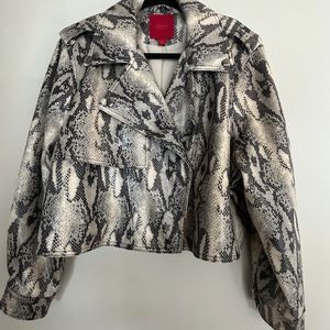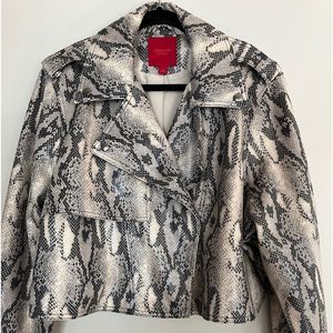 Jennifer Lopez Crop Snake Print Moto Jacket