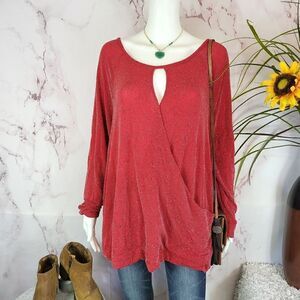 Excellent condition no flaws Jennifer Lopez slipover v neck surplice wrap top. Red with metallic shimmer thread woven throughout. Size 2X