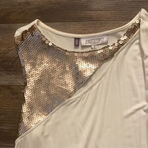 Stunning color block rose gold sequins with ivory. Cut out mid chest as in picture. Like new condition.