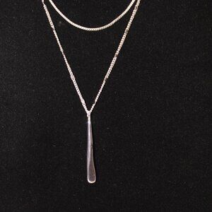 Never worn. Still in original packaging. Brass and steel, a hand-formed drop delicately hangs on a stamped, high-polish chain and is layered with a box chain.