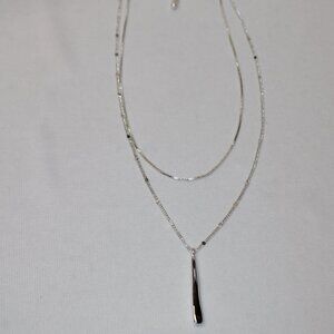 Jenny Bird "Leana" Double-Chain Silver Necklace with Bar Pendent