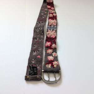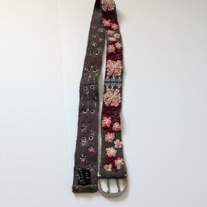 Jenny Krauss Embroidered Belt 100% Wool Size Large 32-40 Inches Floral Gray Pink