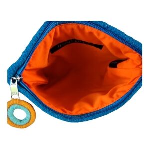 Add a pop of color and charm to your accessories with this vibrant Jenny Krauss zip pouch, beautifully handcrafted in Peru. Made from 100% wool, this eye-catching pouch features an embroidered floral monogram “D” design on a bright turquoise background. Perfect for organizing cosmetics, small essentials, or gifting!