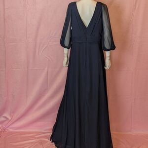 Jenny Packham Bridesmaid Midnight Blue Luxe Chiffon V Neck Long Sleeve Dress