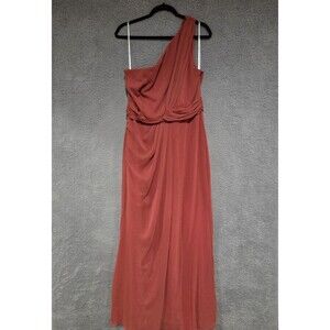 Jenny Packham Bridesmaids Dress Maxi Womens 4 Rust Lux Chiffon One Shoulder Gown