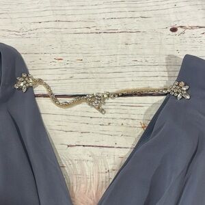 Jenny Packham Chiffon Rhinestone necklace Maxi Dress Gown Blue silver stone gown prom JP1005 NWT