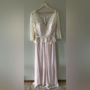 Bridesmaid, formal, special occasions, ball gown, wedding, lace, feminine, delicate, dainty, elegant, timeless, soft pink, cream