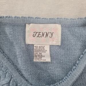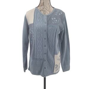 Jenny Vintage embroidered floral cardigan Grandmacore sweater blue Size Medium
