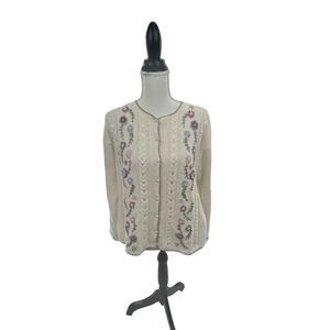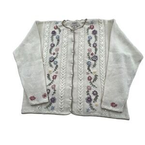Jenny Vintage button up floral sweater , cardigan with pearl button closure This is in execellent condition with no , rips ,stains or tears.
