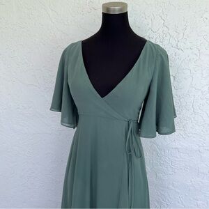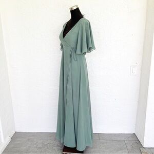 Jenny Yoo BHLDN Ari Bridesmaid Dress Flutter sleeve Gown in Eucalyptus Green 2