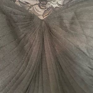 I bought this dress NWT and wore once for a company holiday party. As shown in the photos there’s a small tear on the back in the tulle (it came like that), but isn’t noticeable when on. The dress is convertible with tulle panels that you can tie into straps.