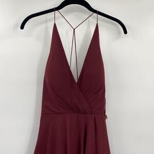 Keywords: flowy bridesmaid moh maid of honor wedding guest black tie formal semiformal cocktail party attire fancy glam glamorous elegant sophisticated anthro weddings anthropologie ruffled femme feminine flattering fit and flare aline a-line crossback romantic special occasion event dressing ballgown military ball prom burgundy maroon deep red wine merlot high low maxi dress faux wrap wrapdress