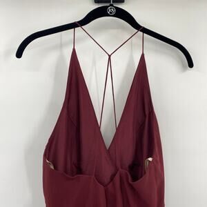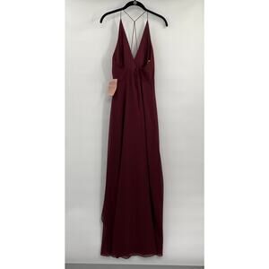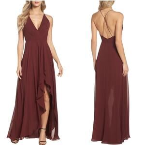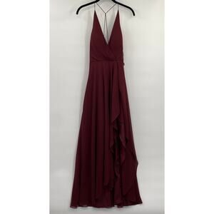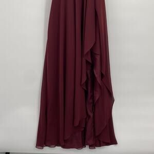 Jenny Yoo BHLDN Farrah Gown Ruffle Skirt Front Slit Chiffon Hibiscus Red Maroon
