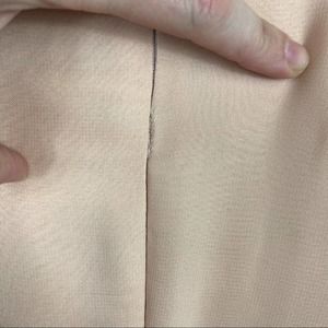 This dress is fully lined and has an invisible back zipper. Dry clean only.
