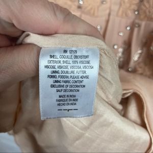 This is a hand-embroidered viscose dress with hand-sewn rhinestone and sequin details.