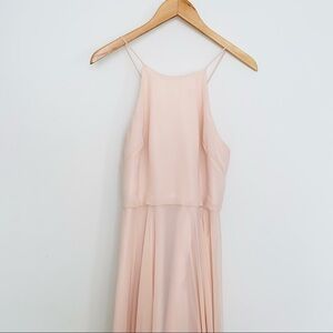 Jenny Yoo Blush Light Pink Luca Bridesmaid High Neck Maxi Dress Gown Size 8