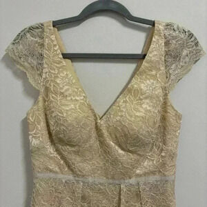 Anthropologie (Jenny Yoo Collection). Floral lace pattern in a gorgeous tan with mauve undertones.