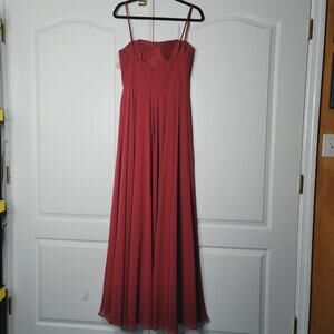 Jenny Yoo Collection Chiffon Bridesmaid Dress Size 8 Burgundy Wine Maxi