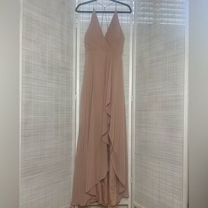 ✨ Jenny Yoo Collection Farrah dress in a pale pink/blush color. Halter neckline. Waterfall front. Back zipper. No stains or wear to the hemline. Good used condition!