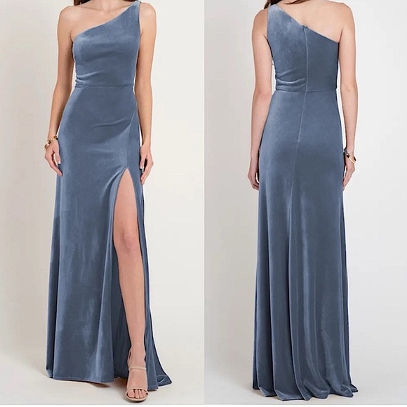 Jenny Yoo Cybill One Should Velvet Gown | Chambray Bluestone | Size 4