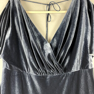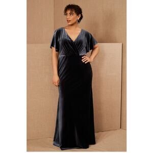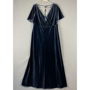 Jenny Yoo Ellis Velvet Maxi Dress Women 20 Blue Flutter Sleeve Bridesmaid Formal