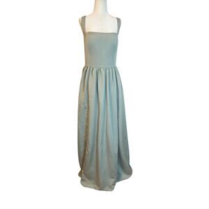 Color: Morning Mist. Style: 22428. Square neckline with wide straps that accentuate the collarbones, an open V-back, and a full A-line skirt with pockets that gather at the natural waist. Size 16. Chest 21", waist 17", length 60". NWT, new with tags.