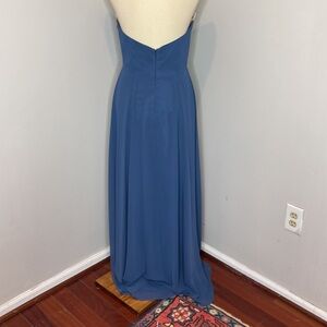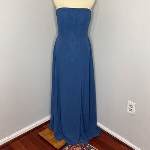 Jenny Yoo Womens Essie Bridesmaid Dress Blue Luxe Chiffon Strapless Gown Size 9