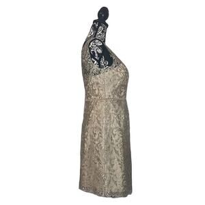 Jenny Yoo Harlow BHLDN Metallic Lace Above Knee Cocktail Dress Sandstone Size 6