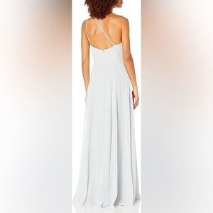 Gorgeous one shoulder dress from Jenny Yoo. This is a pale silvery blue color. Size 16 and in great preowned condition; no visible flaws.