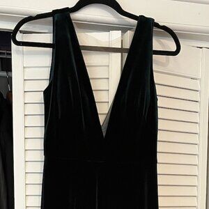 Jenny Yoo Logan Deep V Velvet Column Gown Emerald Green
