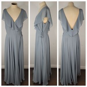 Jenny Yoo Maxi Wrap Dress Sz 12 Faye Flutter Gray Bridesmaid Wedding