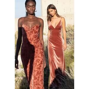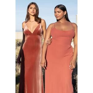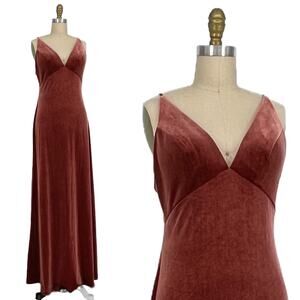 Jenny Yoo Melanie Maxi Slip Dress English Rose Stretch Velvet Womens size 6