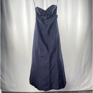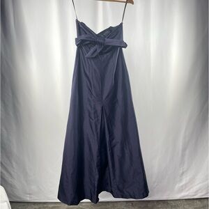 Jenny Yoo Silk Strapless Tie Back Maxi Dress in Blue Size 4
