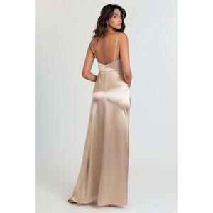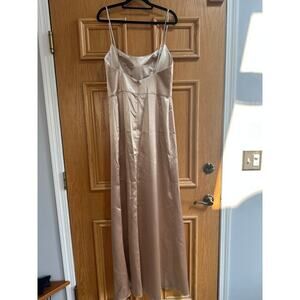 Jenny Yoo Women's Chase Champagne Satin Slip Dress Size 10 Spaghetti Strap Gown