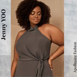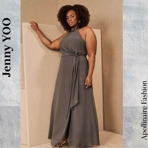 Elegant gray halter maxi dress by Jenny Yoo. Perfect for formal occasions with its sophisticated design and flattering fit.