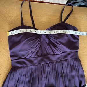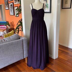 Gorgeous Rich purple gown - it's basically the Aiden convertible gown but made with straps (yay for straps!). It's in great condition with the exception of a pull in the back - featured in the last 2 pictures. The hanger straps were removed so they wouldn't show when worn, and the dress zips up in the back. Measurements are provided in the photos.