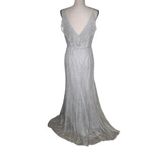 Gorgeous, elegant lace gown, perfect for prom, wedding, or any formal occasion. In very good preowned condition. There are a couple of small spots where the lace is pulled. So hard to detect. Check photos.