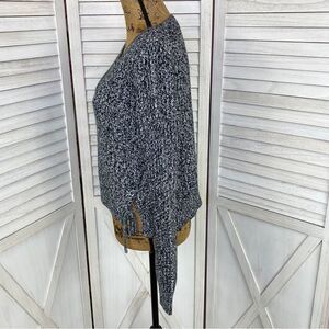 Black & white, Cropped length, Lace up sides, Crewneck, Long sleeve, Pullover, Shirttail hem, Chunky knit, Ribbed cuffs & collar, Drop shoulder