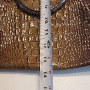 Jenrigo Large Embossed Green Leather Double Handle Satchel/Tote Handbag