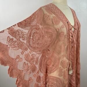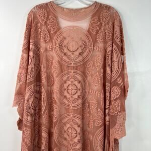 Jen's Party Booty Womens Mandala Mykonos Maxi Kaftan Sheer-Coverup Pink Size O/S