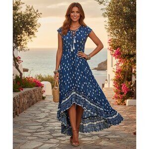 Jen's Pirate Booty Blue Paisley Print Boho High Low Maxi Dress Coastal Cowgirl S