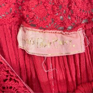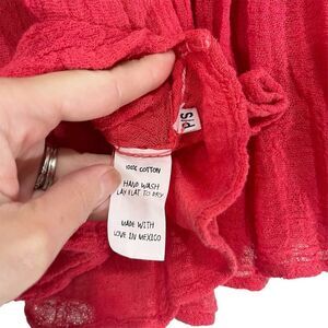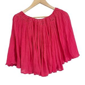 Jen’s Pirate Booty Women’s Boho Off the Shoulder Flowy Top in Washed Red/Coral color, size Small. Beautiful off shoulder blouse from Jen's Pirate Booty Elastic lace crochet neckline, belled elbow length sleeves, floaty fit.