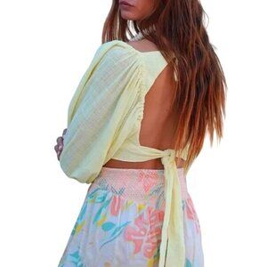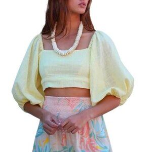 Jen's Pirate Booty cali coast paia crop top in banana. Balloon sleeves. Open back. Made in the USA. Good condition. NO TRADES.