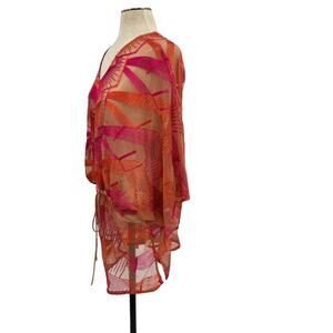 Jen's Pirate Booty Cover-Up Top Sheer Embroidered Pink Orange Size XS/Small