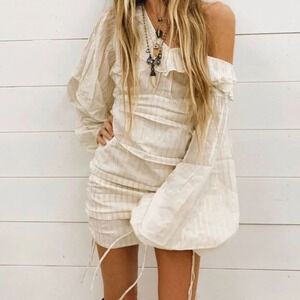 Jens Pirate Booty Cream and Gold Thread Ruched Mini Size Med