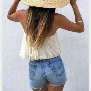 Jen’s Pirate Booty Free People Cha Cha White Tube Top Festival Boho S ASO